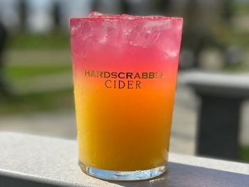 Hardscrabble dry cider & orange juice with a beet cider floater. Garnished with lime.